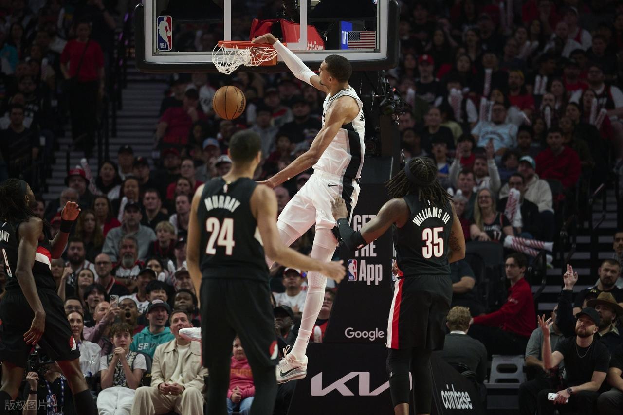 2、文班亚马的统治力实在恐怖,他一上场,马刺的整个主力阵容直接活过来了,即便今天3分手感一般,但是恐怖的防守覆盖面,让开拓者以突破为生的球员,真的很绝望。此役,文班17中9,罚球8中8,3分4中1,得到27分11篮板7个盖帽3助攻4抢断。